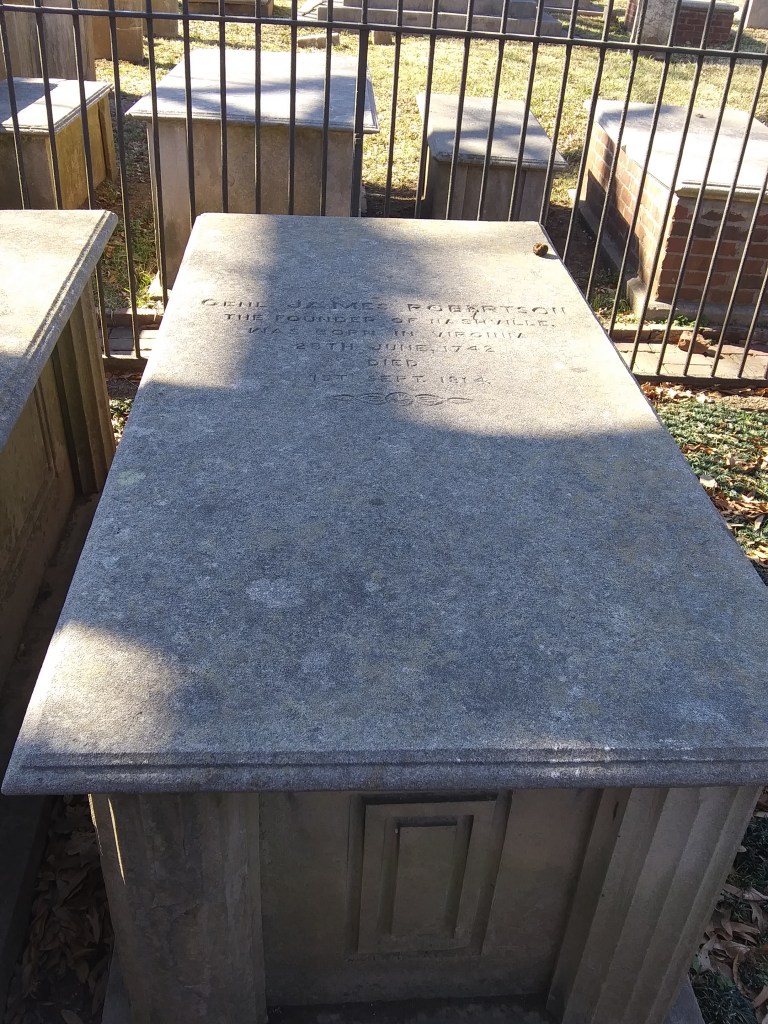 In the late 1760’s, James moved from North Carolina to Fort Watauga (sometimes referred to as Fort Caswell) located near Elizabethton, TN. He married his wife Charlotte Reeves in 1768. They had 13 children together, one of whom, Felix Randolph Robertson, was the future Mayor of Nashville and first white child born in Nashville. During the few years living in Fort Watauga, James decided it was time to move to a new settlement out west, so James and all the people in Fort Watauga left to find their new home.