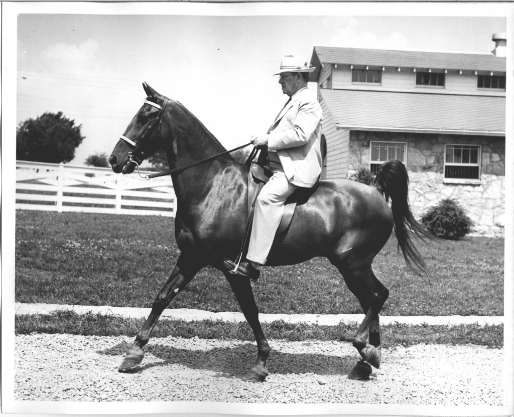 Jack Minnette rode him in the New Hermon Horse Show and won a sack of flour in the spring of 1939. After the horse show, T. P. Shelton bought Haynes Peacock and put him in the New Smyrna show as “Peacock”. Haynes Peacock was known as “Old Dan” when T. P. Shelton bought him. Later, Col. Jack Haynes fell in love with Haynes Peacock and bought him, soon after to win the Walking Horse Horse stake at Madison Square Garden in New York.