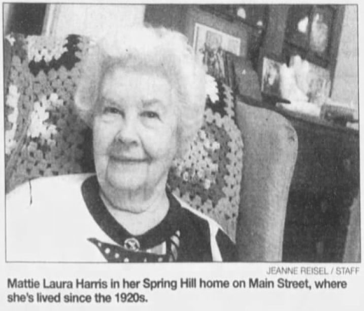 Mattie Laura Harris was born on March 13, 1920, in Spring Hill, TN to McDonald “Don” Harris and Sophia Jane Holland. She had 4 siblings. Their names were: Merle, James, Edward, and Christine. Mattie’s father, Don, was a mail carrier for Spring Hill, TN for many years.