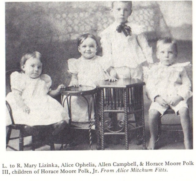 Mary Lizinka Polk was born on July 23, 1900, in Maury County, TN, to Horace Moore Polk Jr. and Mary Louise Campbell. She had 4 siblings, and their names were Campbell Polk, Allen Campbell Polk, Horace Moore Polk Jr., and Alice Ophelia Polk. Mary and her siblings were 2nd cousins 3x removed to the 11th President of the United States, James Knox Polk.