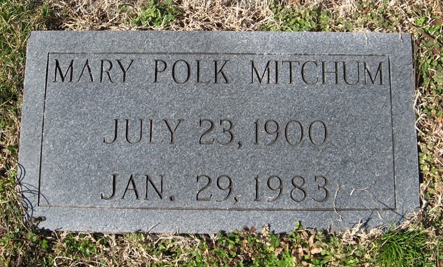 Mary’s family has been a huge part of Grace Episcopal Church, established in 1878, in Spring Hill, TN. Her parents had been married at the church, her mother’s siblings were the first children to be baptized at the church, and her brother Campbell was the first funeral held of a child at the church. Another thing about Mary and the church is that before her, the church kept its doors unlocked. The city of Spring Hill, TN has on their website a story about Mary, her son, and the church. This is the story. “For most of its life, Grace Episcopal Church left its doors open around the clock. That is, until Mary Polk Mitchum, while preparing the communion, noticed the communion wine was disappearing and that there would be a mess in the sacristy. She sent her son, Bud Mitchum, to the church one evening to set up a trip wire with noisemakers in front of the steps to the alter. The thief arrived, tripped the wires, and then Bud walked him south on Main Street to McLemore Avenue to the City Hall jail cell. Thereafter, the church doors were locked.”