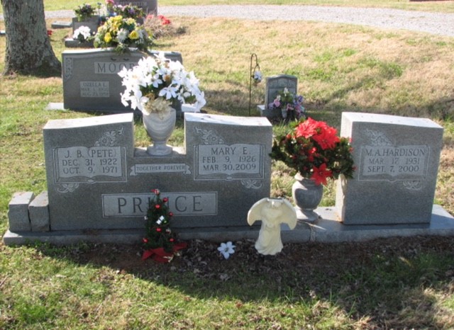 Evelyn was married to James Bernard “Pete” Prince for 28 years until his death in 1971. They had 4 children, and their names were James Travis “Jimmy” Prince, Jerry Edward Prince, Betty (Prince) Cyphers Torcello, and Barbara (Prince) Harmon. She later married Marshall Alvin Hardison and was married to him for 27 years, until his death in 2000.