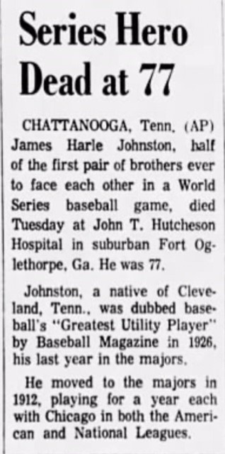 James Harle “Jimmy” Johnston was born on December 10, 1889, in Cleveland, Bradley County, TN, to James Harvey “Uncle Jimmy” Johnston and Fannie Adelia Julian. He had 5 siblings and their names were Myrtle Beatrice Johnston, Warren Bishop Johnston, Clifton Mareena Johnston, Wheeler Roger “Doc” Johnston, Anna Mack (Johnston) Johnson, and Julian Adelia (Johnston) Harrill Smith.