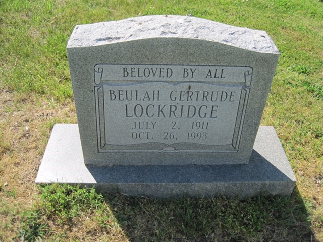 On August 18, 1934, in Williamson County, TN, Beulah married Porter Lockridge. It is unknown if Beulah and Porter had any children, but no record found supports the fact that they did. Porter enlisted into World War II on June 5, 1943, at Camp Forrest, in Tullahoma, Coffee County, TN. He would die in service on February 24, 1946, after a few months of battling Tuberculosis.